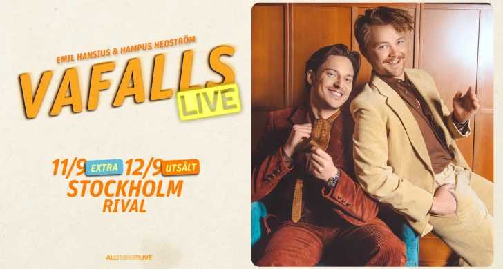 Humorshow Digitala samtal/podcast Vafalls Live 12 september Efter dundersuccén med podden Vafalls ger sig Emil Hansius och Hampus Hedström ut på vägarna med sin liveshow Vafalls Live. Rival