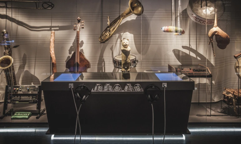 I museets huvudutställning På scen görs historiska och samtida nedslag inom det mångfacetterade fält som utgör svensk scenkonst. Föremål, bilder, videor och ljud, alla med egna historier att berätta, varvas med interaktiva stationer där besökaren kan sätta både sig själv och olika instrument i rörelse.