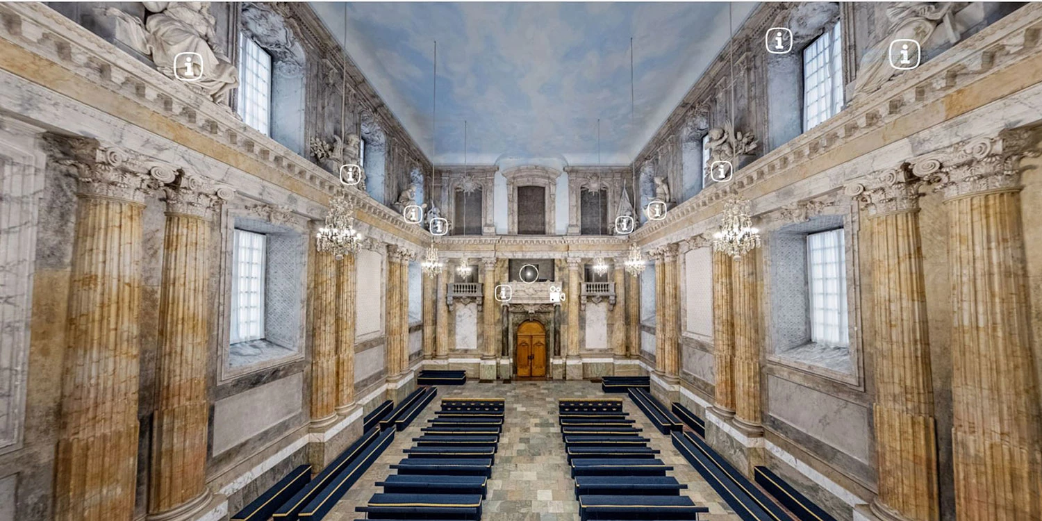 Rikssalen är öppen för besök året runt. Med visningen i 360° kan den magnifika salen upplevas var du än befinner dig.