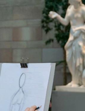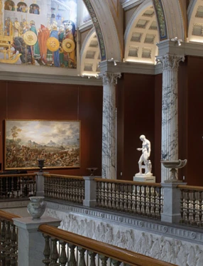 Skulpturgården breder ut sig som en italiensk piazza i museets norra del. Här kan du ta en paus och njuta av skulpturer från Nationalmuseums samling.