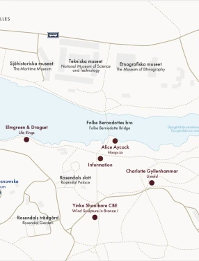 Idag finns sex stycken verk skapade av konstnärerna Alice Aycock, Elmgreen & Dragset, Yinka Shonibare CBE, Charlotte Gyllenhammar, Giuseppe Penoni och årets nya verk av Monika Sosnowska. Till varje verk finns en audioguide, inläst av några av våra mest folkkära skådespelare, som Lena Endre, Pernilla August, Rolf Lassgård och Marie Göranzon.