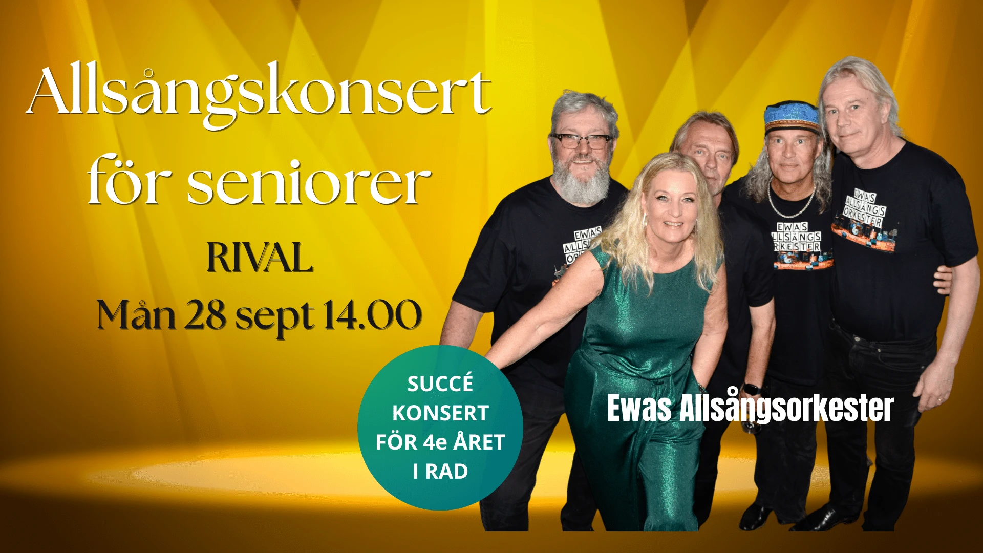 Ewas Allsångsorkester består av några av Sveriges främsta musiker, kända från husbanden till Allsång på Skansen, Let’s Dance, Så ska det låta och andra stora TV-program. Dessa fullblodsproffs arbetar med Sveriges artistelit och syns ofta på de största scenerna i landet. Konsertens allsångsledare är guldskivebelönade sångerskan Ewa Wigenheim, som med sin humor och underfundiga mellansnack sätter extra färg på föreställningen.