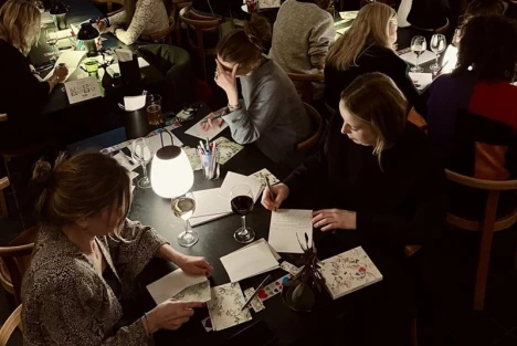 250 kr (samtal, brevpapper, pennor, ett glas vin/öl/alkoholfritt och ett smörrebröd ingår)