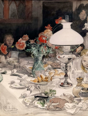 Konst och fest har alltid förenats på Thielska Galleriet. En marsafton 1907 invigde Signe Maria och Ernest Thiel sitt nya hem och galleri med en maskerad som skulle komma att bli mytomspunnen: väggarna kläddes med färska rosor på ytorna mellan tavlorna och vaktmästaren kastade kronblad över alla gäster från balkongen. Parets intensiva sällskapsliv gjorde konstpalatset på Blockhusudden till en viktig samlingspunkt för konstnärer och författare i början av 1900-talet.