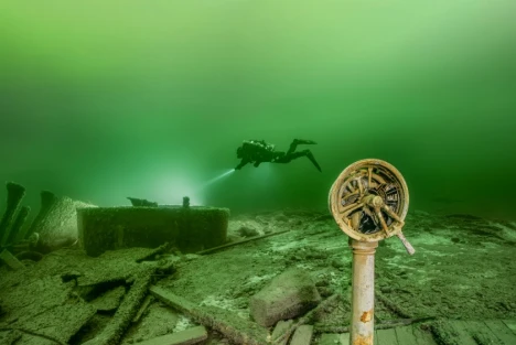 I utställningen Ghost Ships får besökaren följa med ner i Östersjöns mörkgröna djup. Här, på havets botten, vilar hundratusentals vrak – från stormaktstidens majestätiska örlogsfartyg, till ståtliga 1700-talsskepp, lastfartyg från 1800-talet och ubåtar från andra världskriget. På vraken står tiden stilla, men berättar om dramatiska ögonblick.