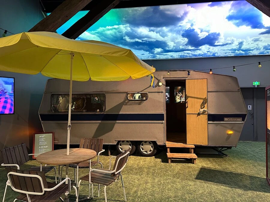 Föreställ er detta: en kväll i en husvagn, med svensktoppen på radion och med tidlösa klassiska rätter på tallriken. Snaps, sill, fläskkarré, jordgubbstårta. Sjung en snapsvisa, för all del! Garanterat fritt från mygg och bag in box, men inte desto mindre nostalgiskt, mysigt, somrigt eller folkligt. Spritmuseums variant av chambre séparée innehåller allt detta: du och ditt sällskap stuvas helt sonika in i husvagnen som tronar upp sig mitt utställningen Dryckeslandet Sverige, och så blir ni serverade trerättersmiddag med passande dryck.