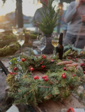 Vi börjar med en kort promenad i omgivningarna där vi hämtar inspiration och material från naturen. Sedan väntar en varm, god soppa och kaffe. Därefter guidar Lina dig steg för steg in i kransbindningens värld. Du får tid och ro att skapa, vara kreativ och ta med dig din egen krans hem.