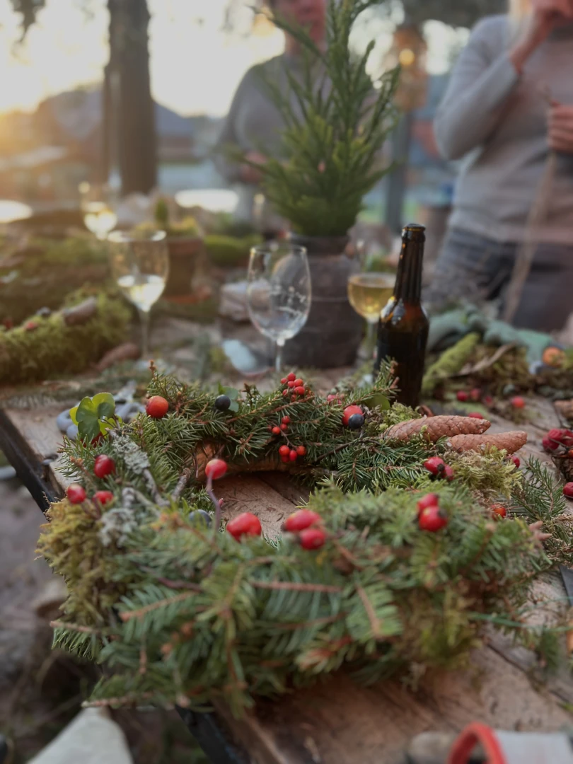 En kreativ stund i naturens tecken. Välkommen till en inspirerande dag där du får binda din egen unika krans – tillsammans med Lina by the Bay. Vi arbetar med naturliga material som växter, fjädrar, alpackaull, kottar, grenar, mossa och andra vackra detaljer från naturen. Inga förkunskaper krävs – bara lust att skapa!