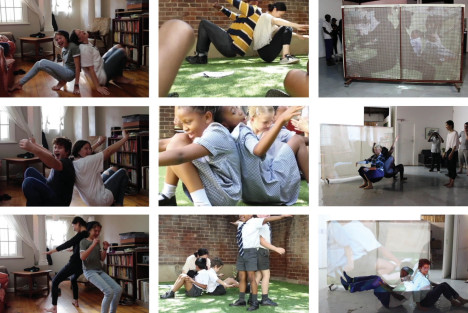 Sedan flytten från Japan har Mako Ishizuka levt som ”den andre” i ett flertal olika samhällen och kulturer vilket har gett henne kulturella, sociala och språkliga perspektiv på det som lätt uppfattas som vardagligt och obetydligt. En form av abstrakt kalligrafi är en av utgångspunkterna för Ishizukas pågående projekt Graphic Movements som är hennes ambitiösa försök att genom en enkel rörelse överbrygga och förkroppsliga två sätt att se på vad det innebär att vara en människa. Övningen går ut på att i par, rygg mot rygg med varandra, sätta sig ner och ställa sig upp utan att använda händerna, något som kräver både samarbete och tillit. I utställningen finns möjlighet att själv prova på.