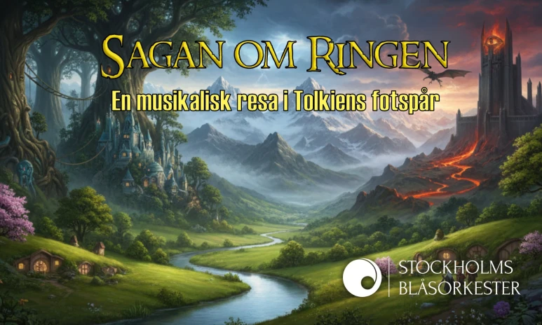 Följ med på en musikalisk resa med Johan de Meijs symfoni Sagan om Ringen som huvudnummer. Originalmusik för blåsorkester, ackompanjerad av stämningsfulla verk som väcker hobbitar och troll till liv. Ett måste för alla fans!