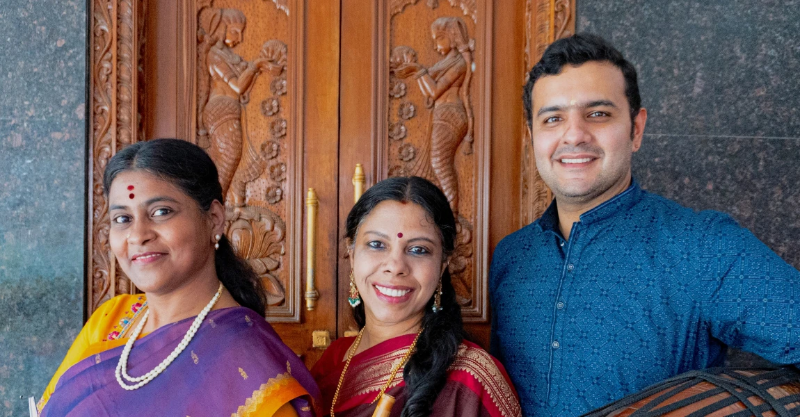 Shantala är en internationellt verksam musiker och pedagog med rötter i Chennai, den karnatiska musikens hjärta. Hennes spel kännetecknas av en varm ton och en rytmisk precision som vuxit fram genom många års fördjupning och samarbeten världen över. Vid hennes sida hör vi Anirudha Bhat, en dynamisk slagverkare med stor erfarenhet från både traditionella och nyskapande sammanhang. Med den vokala rytmkonsten, konnakol tillför han ytterligare ett lager av energi och närvaro.