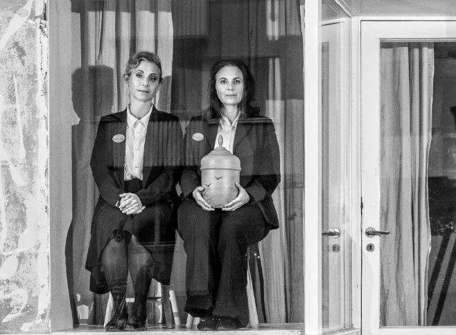 Det dör alldeles för få i Bollstafors. Åtminstone för att en begravningsbyrå ska bära sig. Systrarna Helen Sjöholm och Anna Fahlstedt spelar systrarna Hellstedt som försöker driva vidare familjeföretaget på en döende landsbygd. Ett ögonblick i sänder.