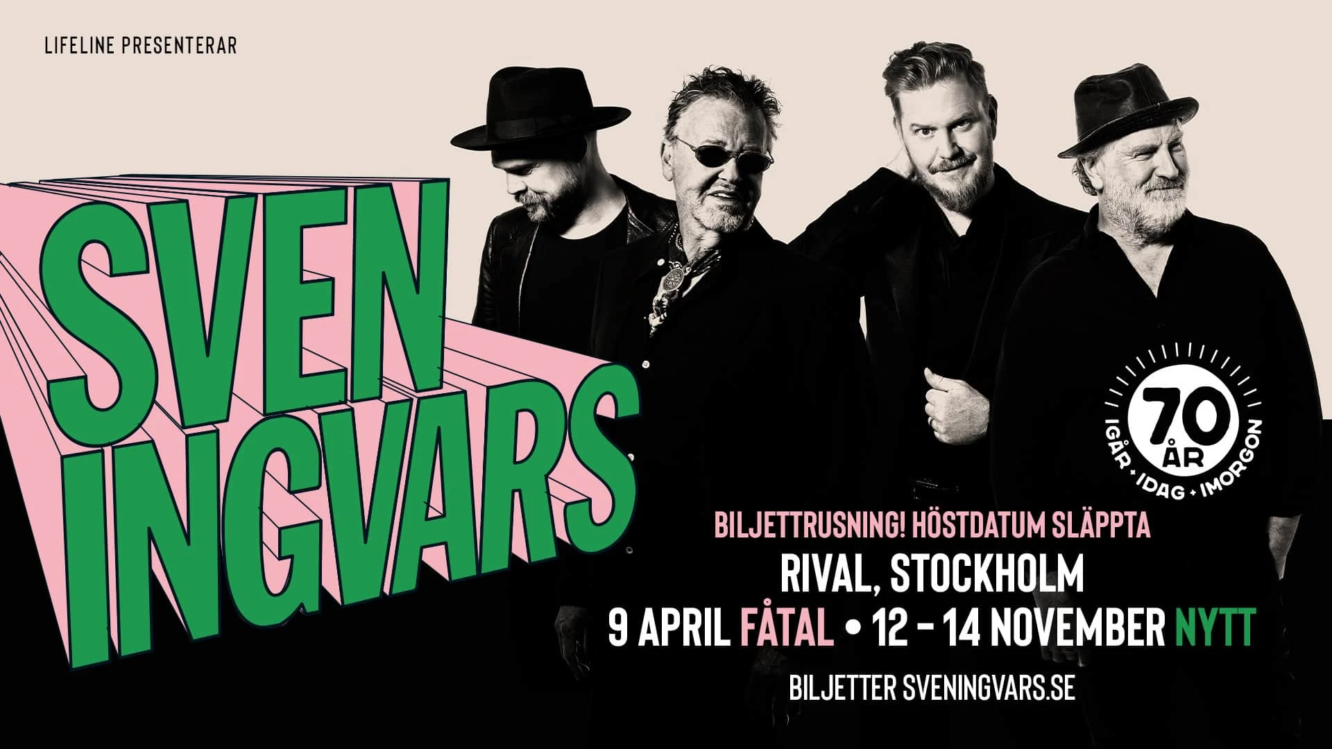 Under 2026 ger sig Sven Ingvars ut på en stor jubileumsturné för att fira hela 70 år som en av Sveriges mest älskade musikskatter. Få band har lämnat ett så djupt avtryck i den svenska folksjälen – och ännu färre har lyckats hålla sig lika levande genom generationer.