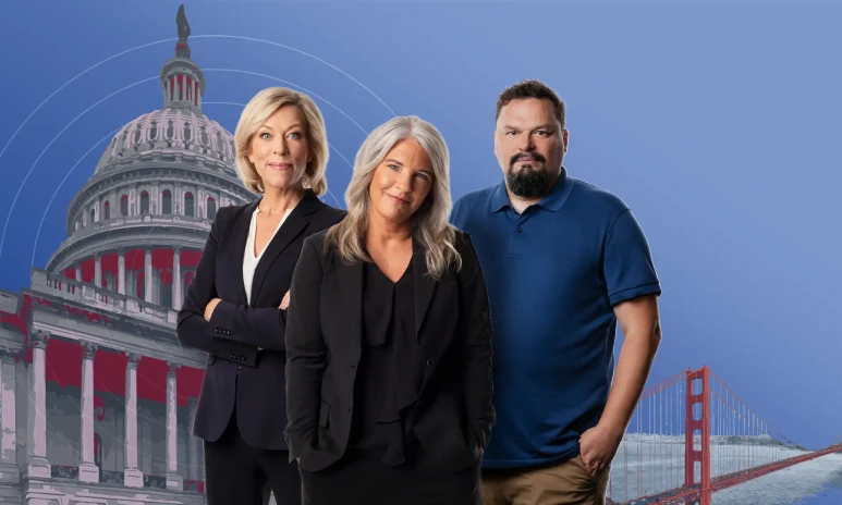 På scen står programledaren Sara Stenholm, Ginna Lindberg, Washingtonkorrespondent, och Roger Wilson, tidigare korrespondent i San Francisco – tillsammans bjuder de på insikter, aktuella gäster och kanske till och med lite musik.